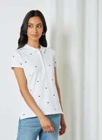 TOMMY HILFIGER All-Over Lgo Slim Fit Polo Mini Flag All Over Embr / White